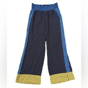AERIE Sz M Lounge Bohemian Hippie Paisley Elastic Ruched Waist Wide Leg Palazzo Pants with Pockets. Super cute lounge wear. Art to wear. Lagenlook. Soft and flowy. Slinky and comfy.