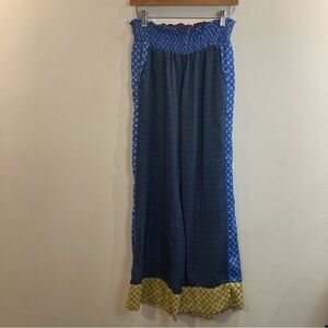 AERIE Sz M Lounge Bohemian Hippie Paisley Elastic Ruched Waist Wide Leg Palazzo Pants with Pockets. Super cute lounge wear. Art to wear. Lagenlook. Soft and flowy. Slinky and comfy.