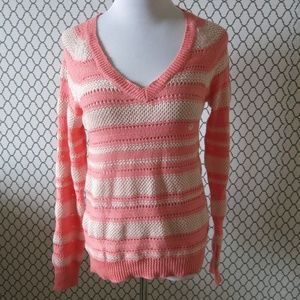 AEROPOSTALE Cotton Blend Stripe Long Sleeve V Neck Knit Sweater - Size Large