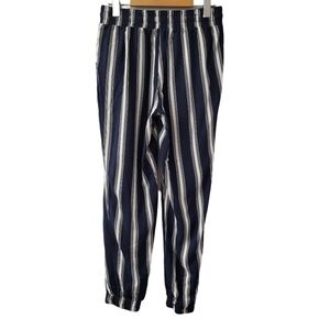 AEROPOSTALE Navy White Striped Ankle Jogger Tie Waist Trouser