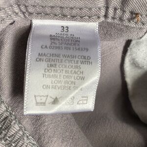 8” inseam 98% cotton 2% spandex 2 back pockets 2 front pockets