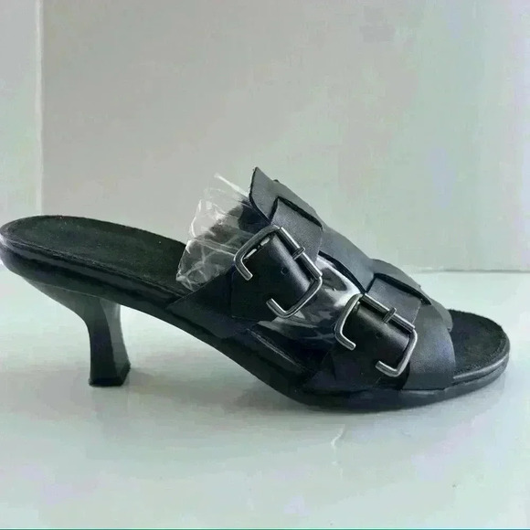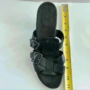 AEROSOLES BLACK LEATHER BUCKLE SANDALS SLIP ON SIZE 9