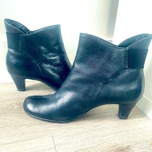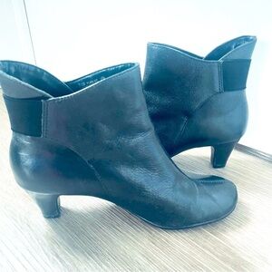 AEROSOLES Black Leather Round Toe Kitten Block Heels Ankle Comfy Booties 7.5