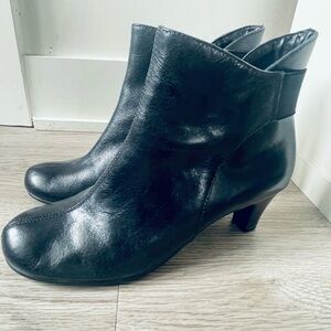 AEROSOLES Black Leather Round Toe Kitten Heels Ankle Booties Size 7.5