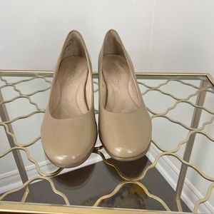 Beige taupe never worn Aerosoles shoes. Very comfy with cushioned insole and flexible rubber sole.