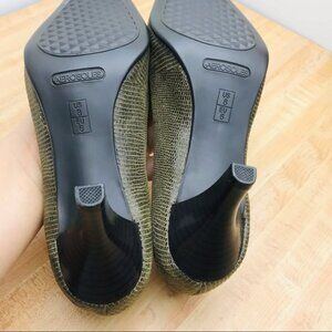 brand new without tag women army green alligator crocodile skin suede slip on heels in women size 8