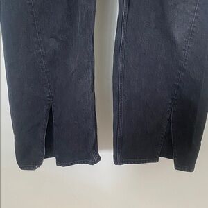 A pair of perfect used condition black 90s relaxed high rise split-vent jeans from Abercrombie and Fitch, in their curve love style. Features a fun split up the front of the hem!