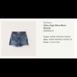 Like new denim shorts from Abercrombie & Fitch. Dark ripped wash.