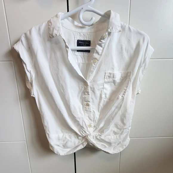 partial button up blouse from Abercrombie. goes great with jeans and jean shorts.