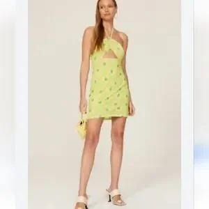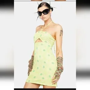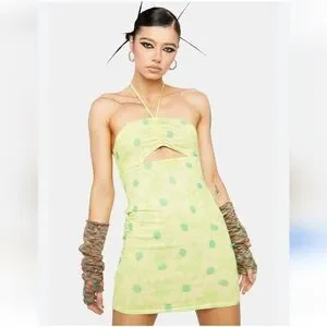 Psychedelic Grenn/Yellow mesh lined dress NWT