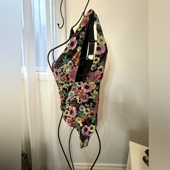 Elegant chemise with vibrant floral design. Features a mix of colorful flowers. Ideal for a chic look.