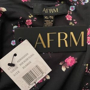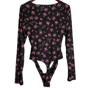 AFRM Gimli Floral Long Sleeve Silky Bodysuit Floral Cut Outs V Neck Extra Large