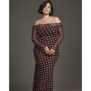AFRM Long-Sleeve Off-The-Shoulder Mesh Maxi Dress Polka Dot 2X