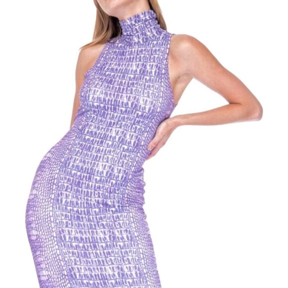 AFRM Maxi length bodycon dress, worn only once. Purple croc print.