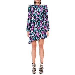 AFRM Ruffle Cutout Back Long Sleeve Dress, Floral, Size S
