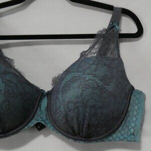 AG - ASHLEY GRAHAM | 40 DDD | Elegant Grey and Turquoise Lace Patterned Bra