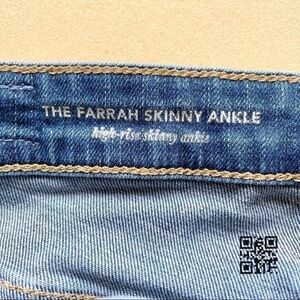 AG Farrah Skinny Ankle jeans with slight whiskering/distressing, no holes