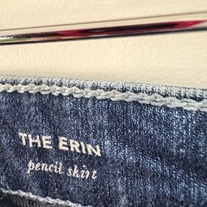 Stylish blue pencil skirt with distressed details. Perfect for casual outings.