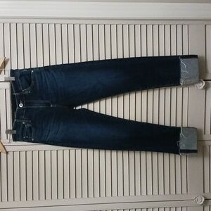 AG Adriano Goldschmied High Rise Stevie Cuff Slim Straight Blue Jeans, Size 25