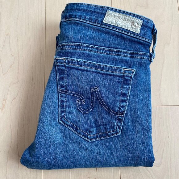 Item keywords: casual streetwear, flattering, bodycon sexy jeans, timeless classic,skinny jeans, blue denim, women's fashion, AG jeans, super skinny, cotton blend, USA made, casual wear, Adriano Goldschmied, 24R size, button closure, versatile jeans, denim pants, casual