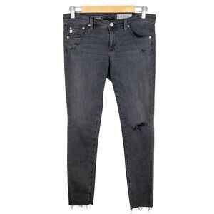 AG Adriano Goldschmied Womens The Legging Ankle Jean Distressed Grey Size 28