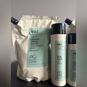 AG Care Vita C Strengthening Shampoo and Conditioner set. Includes 10oz original size shampoo, 8oz conditioner plus large refill pouches in the 1L size.
