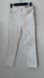 They are made of white denim with a bit of stretch and feature a standard five-pocket design with a zip fly and button closure.