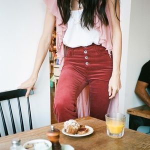 A high-rise classic, straight fit cropped pant with an exposed button fly. Constructed in a classic stretch corduroy with a higher pile for a plush, elevated character.