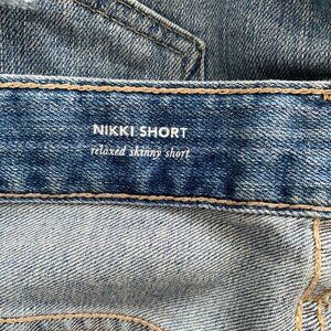 AG "Nikki" Relaxed Skinny Jean Shorts, size 27. Fits comfy to size, depends on how you want them to fit.