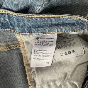 AG Prima Mid Rise Cigarette Crop Jean Womens 31 Blue Distressed Raw Hem Stretch