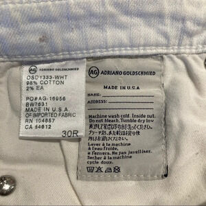 AG Sz 30R The Stilt Cigarette Roll Up White Jeans