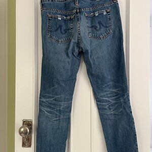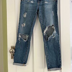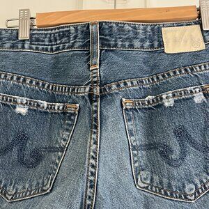 AG straight jean cuffed at the bottom and ripped in front. Retails for $400. Worn and loved. Size 24R and fit small.
