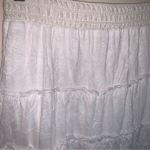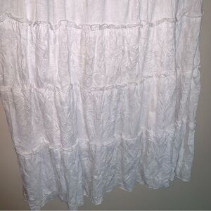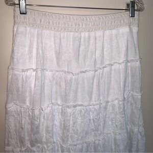 Chic white midi skirt with tiered design. Perfect for versatile styling.