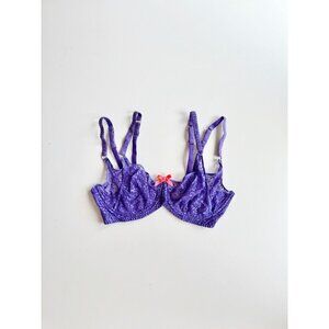 AGENT PROVOCATEUR Rei Electric Purple Lace Coral Bow Balconette Bra, Size 36E