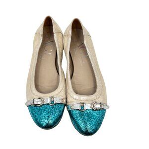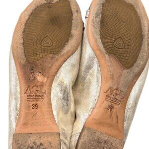 Brand: AGL Attilio Giusti Leombrumi | metallic shines, leather upper and leather outsole with marks of wear. Color: Silver and turquoise Size Tag:39 EU