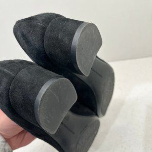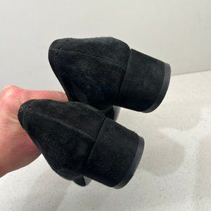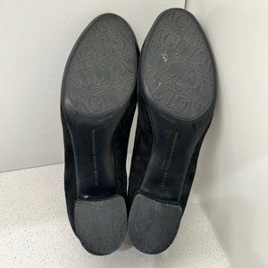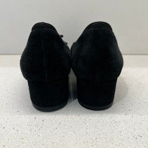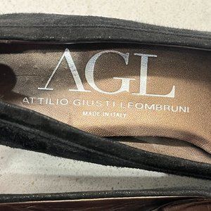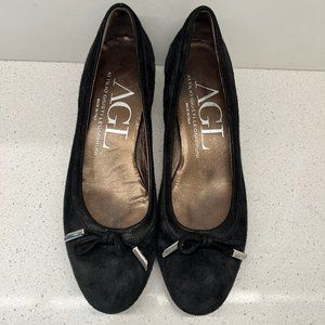These are AGL round toe block low heel genuine suede leather black pumps on size 36.5 or 6.