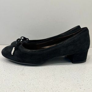 AGL Pump Black Leather Suede Shoes Round Toe Bow Accent Block Heels Sz 36 1/2