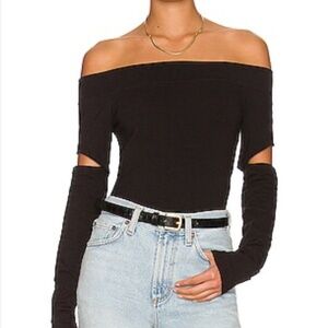 AGOLDE Ariel Off Shoulder Top in Black Long Sleeve with Slits - Size Small