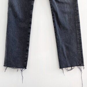 A streamlined take on a cult favourite, these are high-rise jeans with a straight silhouette, offset back waistband and a criss-cross button front. They’re made from non-stretch 100% organic cotton denim. This version comes in a washed black with a raw hem.