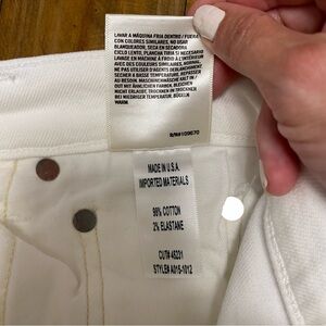 Classic and contemporary AGOLDE white jeans. These Isabel Slim Boyfriend jeans have factory distressing. Zipper fly. Size 24.