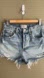 Stylish light blue jean shorts. Features distressed detailing. Perfect for casual wear.