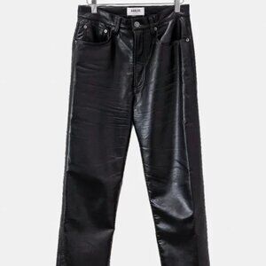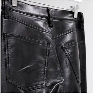 AGOLDE straight leg pants are crafted from a supple recycled leather blend and cut to fit above the waist with a five-pocket configuration and a classic zip fly and button closure.