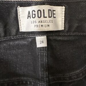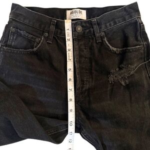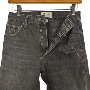 AGOLDE Premium High Rise Skinny Jeans Black Destroyed Hem Button Fly Size 24