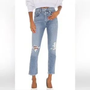 These Agolde Riley Cropped jeans are brand new without tags. Never worn. Intentionally distressing on knees. So cute with heels, sneakers, or sandals.