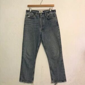 Denim brand AGOLDE showcases their craftsmanship with these cropped Riley jeans, which are designed to combine a carefree look with meticulous detailing, such as the ripped detailing at the ankles.