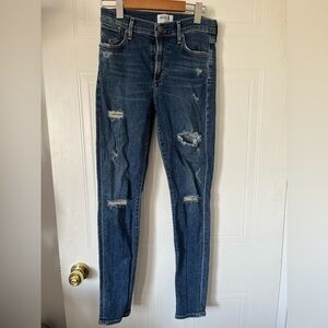Size 27 Natural Distress Approximate measurements: Waist 13” 9.5” rise 29” inseam Stretchy material (0.2)