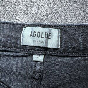 AGOLDE Womens 26 (25x28) Black 90s Pinch Waist High Rise Straight Kick Flare