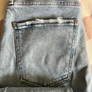 These are mid-rise jeans with a slim fit through the thigh and a straight leg. They're made from ultra-comfortable, organic stretch denim in a medium indigo wash. With minimal intentional distressing