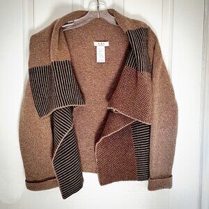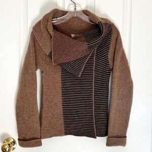 Unique wool blend AIDA shawl wrap sweater. Brown and black, size medium. Made in Italy