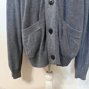 AIGLE MEN'S GREY 100% COTTON SHAWL LAPEL CARDIGAN, This is a neutral sleek chic preppy yet comfy and business casual to casual appropriate grey button front cardigan with a chic elevated shawl lapel collar - 100% cotton - long sleeves -regular length - regular fit - perfect over a t-shirt or a shirt for work. Fall and winter favorite layer.